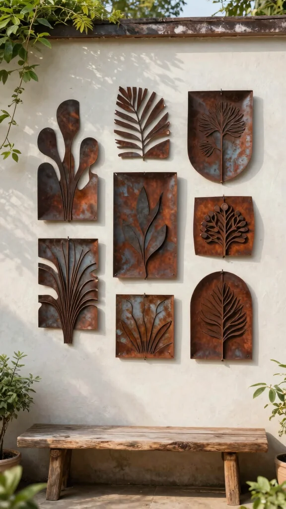 Choose pieces in colors that echo your garden, from bronze to charcoal. Install at different heights to build a layered look. Pair different sizes for a gallery vibe. Consider corten steel for a natural rust finish that fades softly with time.