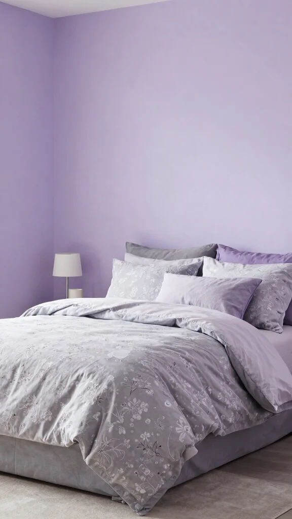 Use lavender walls with gray bedding for balance
