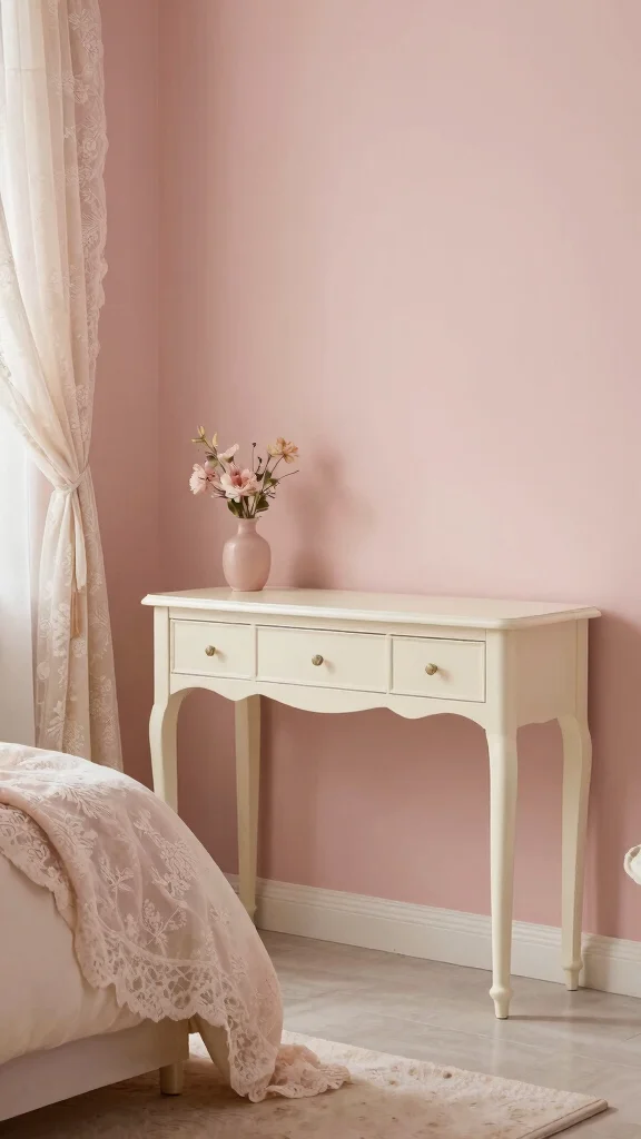 Use blush walls with ivory furniture for lightness