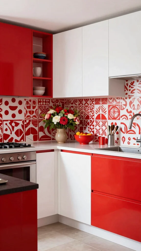 Red and white create fast energy and focus. The combo works great in kitchens and dining rooms. Use a bold red wall as a focal point and balance with white furniture. Layer textures through fabrics and metal for depth.