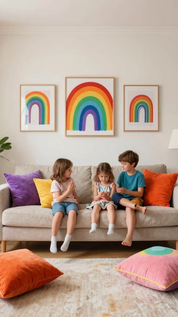 Add playful patterns in textiles. Use soft furnishings to keep comfort. Include greenery for freshness. Soft lighting enhances the cheerful vibe.