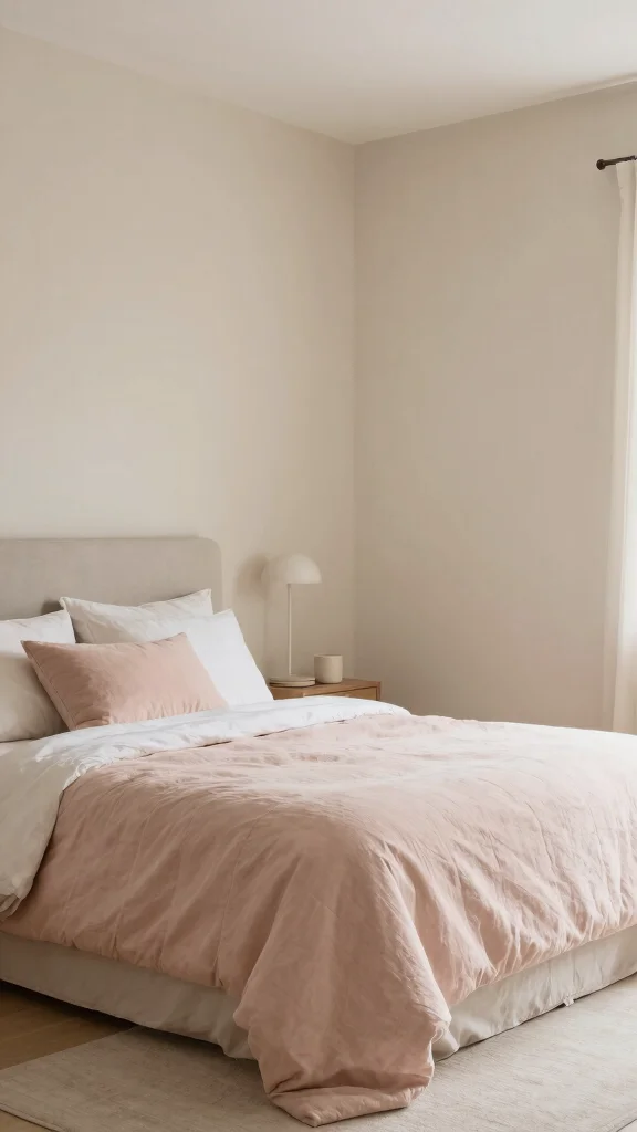 Use beige walls with blush textiles for warmth