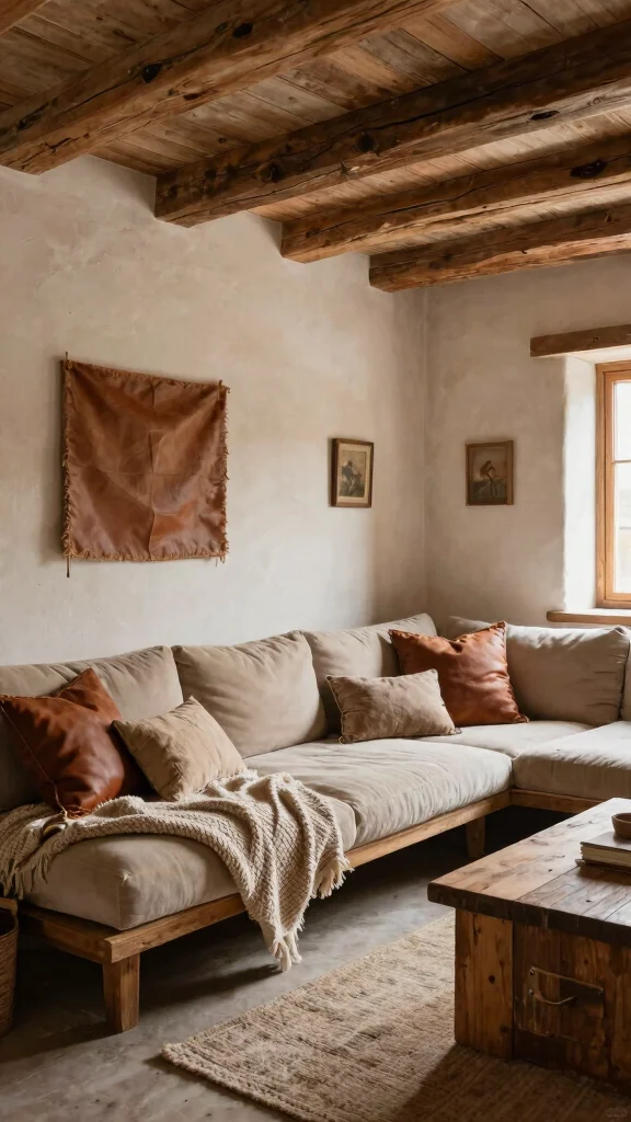 Rustic earth tones feel cozy and grounded. Browns, greens, and warm reds create a welcoming atmosphere. Use wooden beams and reclaimed furniture to heighten the rustic charm. A leather sofa with textured throws adds instant comfort.