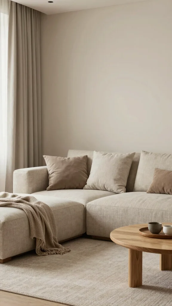 Cozy neutrals create a soft, welcoming backdrop. Soft grays, beiges, and taupes calm the eye. Layer textures like wool, linen, and cotton for depth. Brass accents or warm wood add subtle warmth.