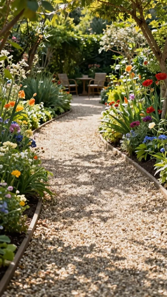 Plan a wide, smooth walkway with proper base. Lay weed barrier, then place gravel in a stable depth. Edge with low plants or bricks to keep edges neat. Choose color that complements surrounding plants. Edging helps define the path and reduces maintenance. This update makes your yard walkable and polished.