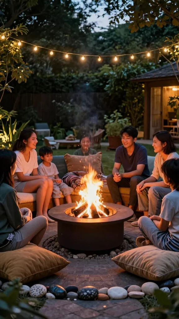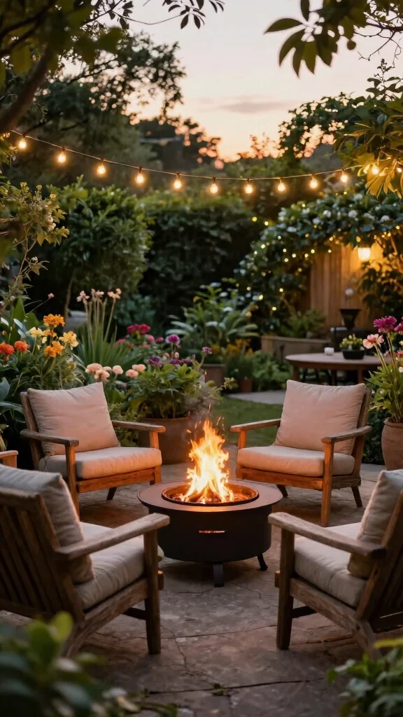 Keep fuel safe and accessible. Use a range of seating options to fit small or large groups. Light the area with soft lights to extend the night. This feature turns the garden into a social retreat.