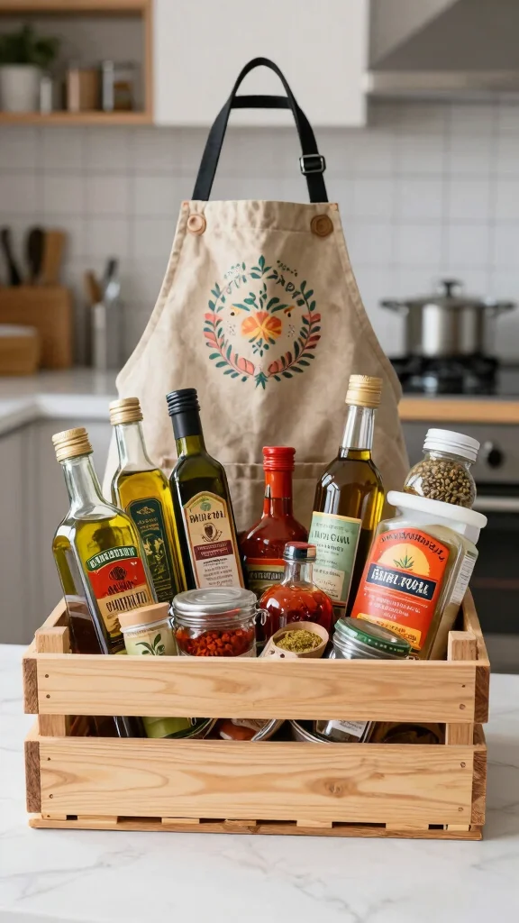 This is a chef’s dream in a bag. Fill with rare spices, specialty oils, and artisanal sauces. Toss in a trendy apron and useful kitchen gadgets. A wooden crate serves as both base and decor. A personalized recipe card can inspire meals and make it extra special. Tailor the picks to their cuisine love to boost the wow factor.