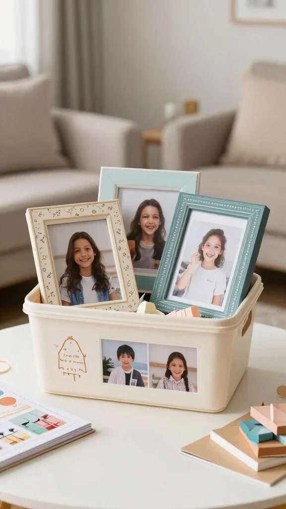 Capture memories with a personalized photo basket. Start with printed photos in decorative frames, plus fun photo props or a mini scrapbook. A customizable photo album can boost the sentiment. You can add a few craft supplies for a DIY photo project. This basket helps memories last and feel personal.