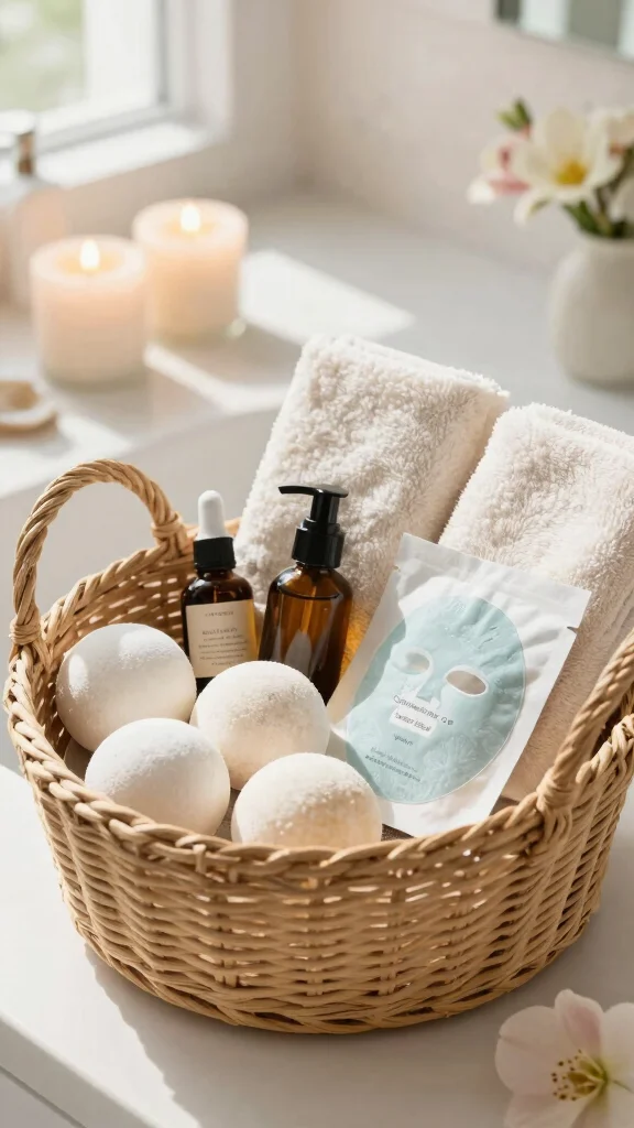 Group items by scent and use a reusable container for a chic look. Choose affordable options like store brand bath items. The bundle fits a wide budget while giving a luxe feel that echoes wellness trends seen in design blogs. It makes self care easy and accessible, a small ritual just for them.