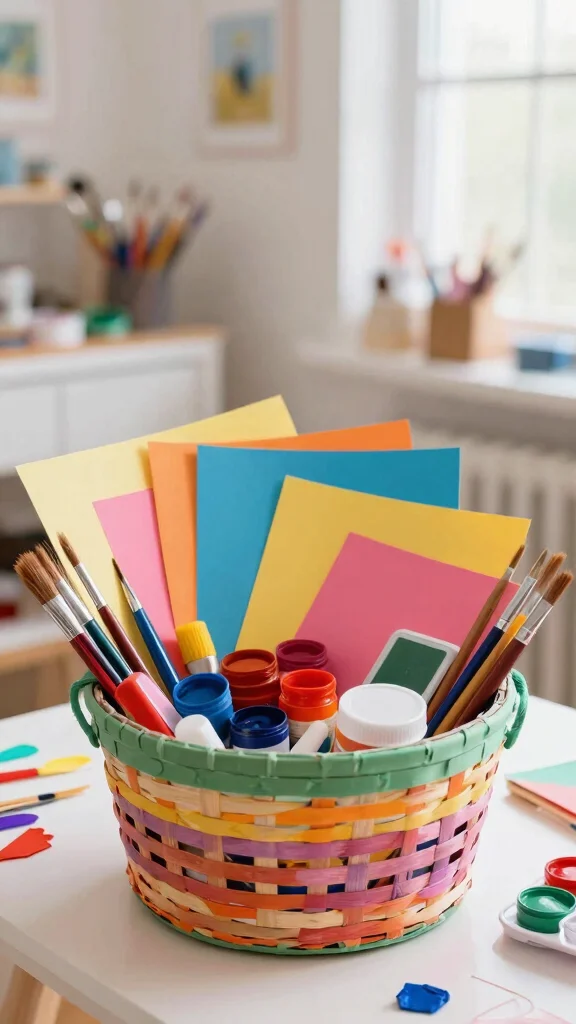 This kit fuels the maker in anyone. Include colored paper, paints, brushes, and adhesives. Add a crafting magazine or DIY project book. A colorful basket makes storage easy later. It suits anyone who loves hands on projects. The look stays bright and playful.