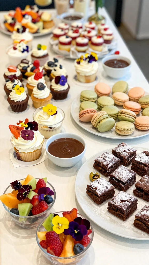 Fact: Dessert grazing tables with bite-sized treats boost sharing by up to 60%. Pair sweets with fresh fruit, sprinkle edible flowers for charm, and finish with a light drizzle of sauce or powdered sugar.
