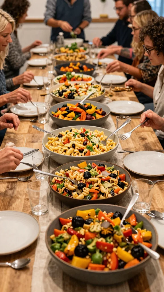 Share meals and stories. A big table invites people to pass dishes and chat. Hearty platters work best here, with generous portions for self service. Offer a mix of hot and cold items so guests stay comfortable. Place plates and utensils at the center to keep lines short. A homey, inviting table makes it easy to mingle and connect.