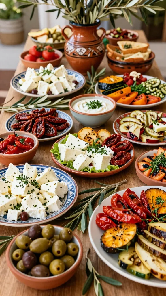 Bright herbs and crisp vegetables define coastal flavors. A mix of olives, marinated veggies, and pita keeps the vibe relaxed. Add sweets like baklava to end on a bright note. The table should feel sunny and fresh, like a market by the sea. Use terra cotta or earth tones to echo the theme. Guests will feel transported by the colors and aromas.