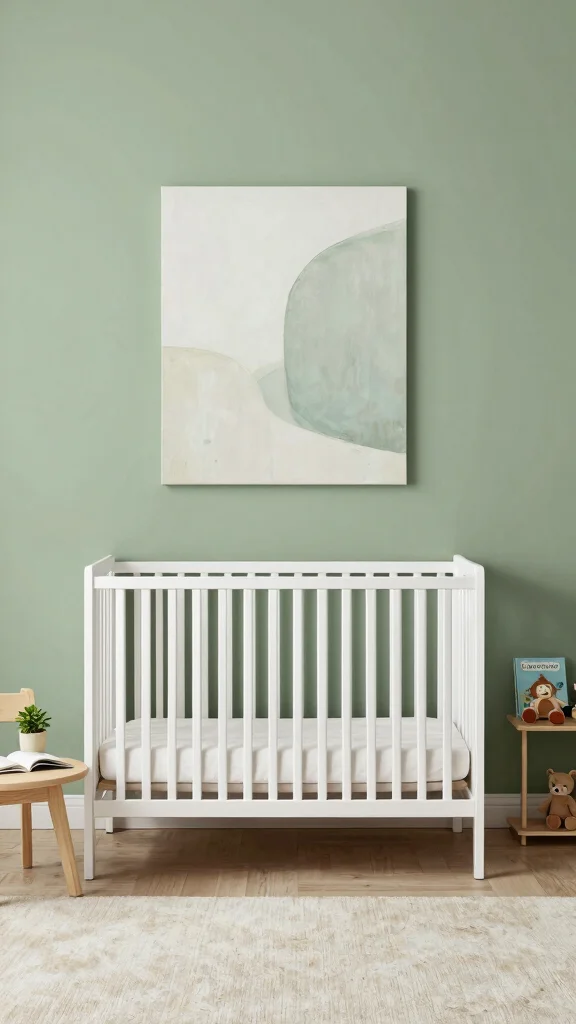 How can I incorporate sage green into a nursery without making it feel heavy or busy?