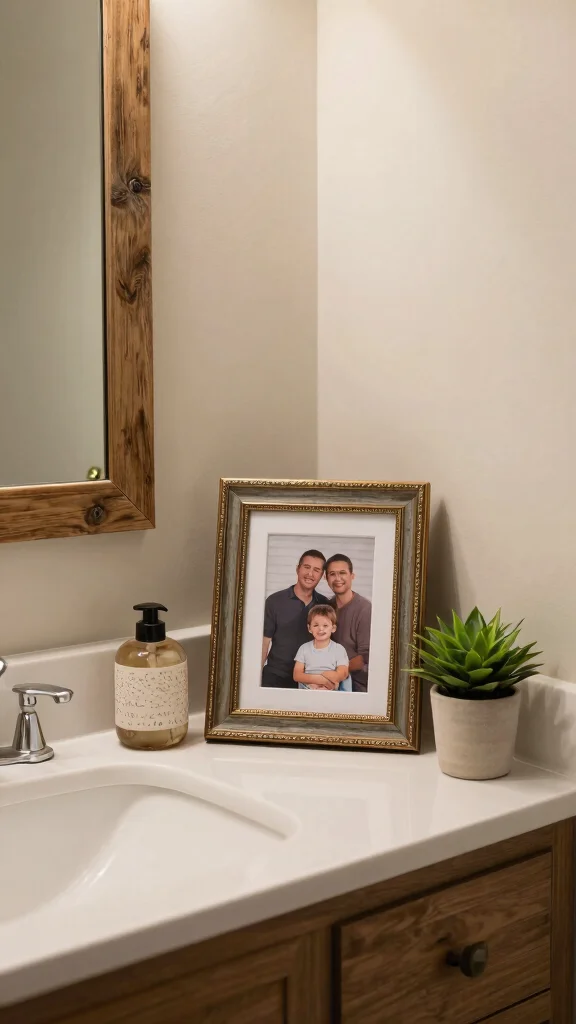 Personal items make the bath feel like home. Display family photos in sleek frames and travel mementos that tell your story. Choose frames that match your bathroom aesthetic to stay cohesive. A small keepsake can anchor the space and add warmth. Rotate items to keep the space fresh while staying true to you.