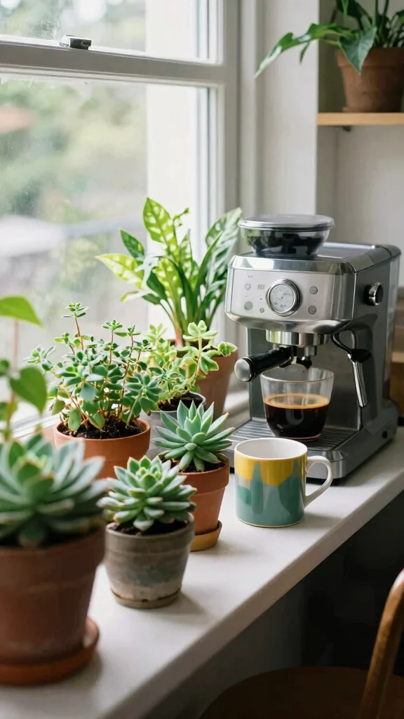 Plants wake up a coffee corner. They add life and help air feel nicer. Choose forgiving varieties if you’re new to plants.
