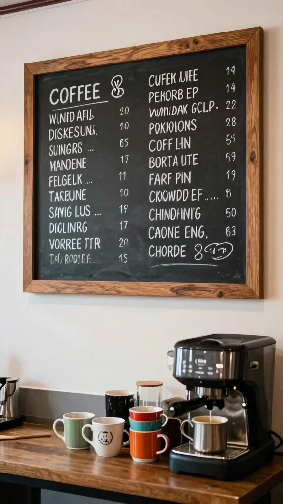 Add a chalkboard menu to spark fun at the coffee station. It becomes a playful feature and a place for daily specials. Use a big board or smaller frames if space is limited.