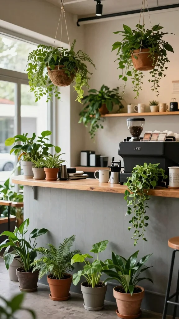 Greenery boosts life around your coffee area. Add indoor plants or herbs that look good and can be used later. Use hanging planters or small pots to spread color. A vertical garden can save space while adding texture. Greenery makes the space calm and fresh, turning coffee time into a relaxing ritual.