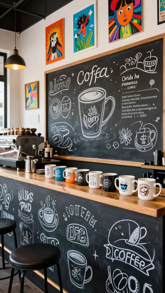 Turn the bar into a canvas. Add hand-painted mugs and a chalkboard wall for recipes. Show local art or a gallery wall of coffee art. Let colors and shapes spark joy as you brew. Keep a few bold pieces, swap them seasonally, and enjoy the creative vibe.