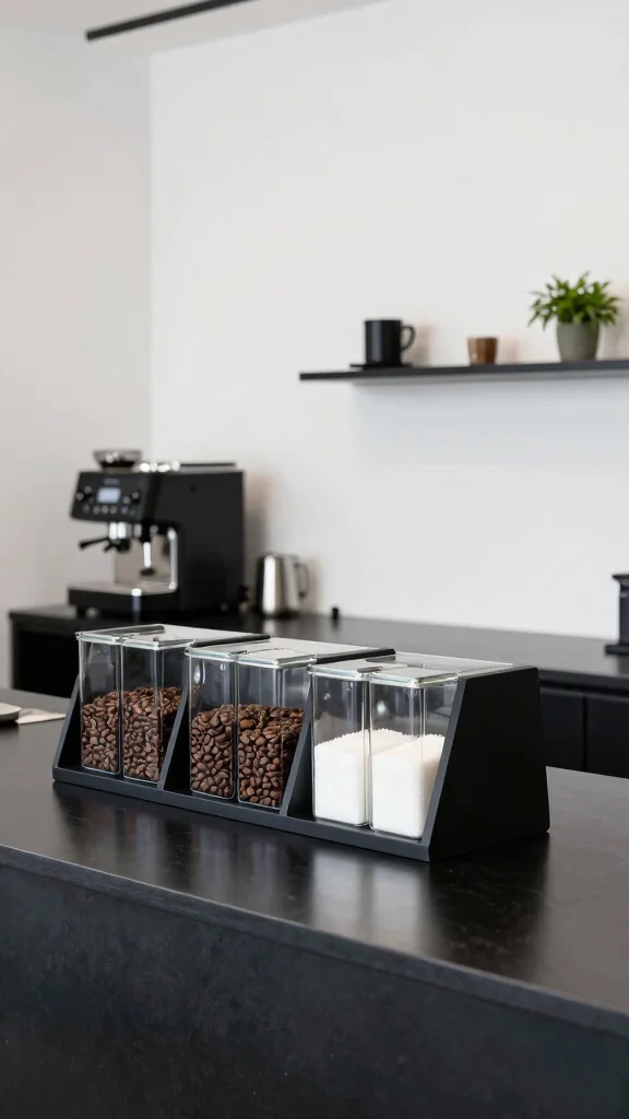 For easy setup, keep it simple and budget-friendly. Choose affordable pieces and swap in glass canisters. Tuck cords away and let open space breathe. This approach feels tidy and efficient, making daily coffee feel effortless.