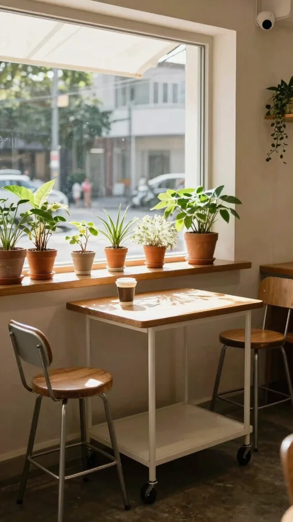 If you have a window, place your coffee bar there. Natural light makes the ritual feel brighter. A light table or cart that moves easily keeps the setup flexible. A small plant on the sill frames the view and adds life. Keep the space airy by limiting clutter. A gentle color mix and a tiny plant lend calm energy, perfect for a bright morning.