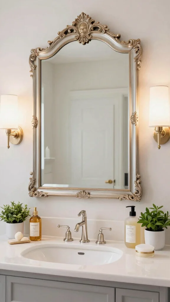 A striking mirror can serve as both a functional accessory and a stunning centerpiece on your bathroom counter. Look for mirrors with ornate frames or unique shapes to add visual interest. Positioning your mirror thoughtfully can enhance light, making your bathroom feel brighter and more spacious.