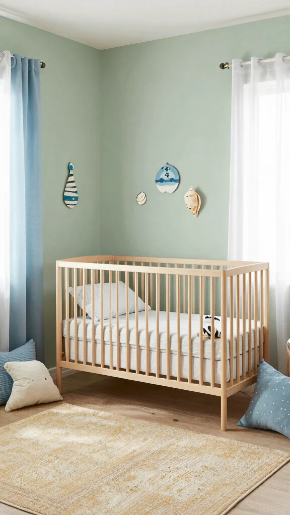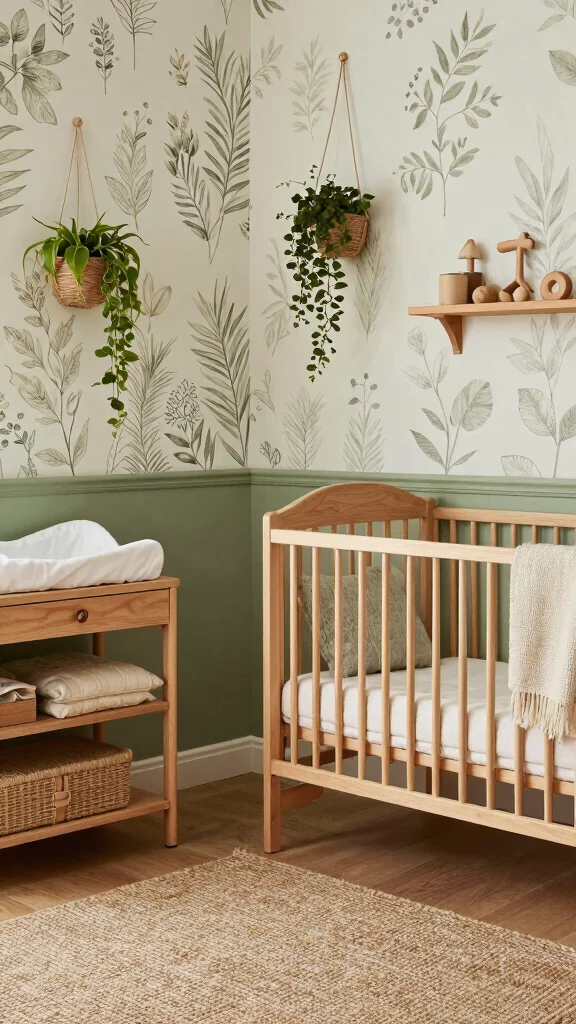 Longing to bring the beauty of nature indoors for your baby? A nature-inspired sage green nursery is the perfect sanctuary. This design embraces earthy textures and natural materials, enveloping your child in a nurturing atmosphere. Imagine wooden accents, like floating shelves adorned with plant-themed decor, alongside cozy wooden toys. Opt for botanical print bedding and hanging planters to amplify the organic feel of the space. A soft jute rug can ground the room, creating a comforting, nature-infused environment that sparks creativity and imagination from early on.