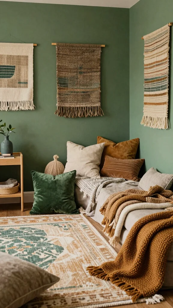 – Use a mix of textures like woven, knitted, and natural materials.
