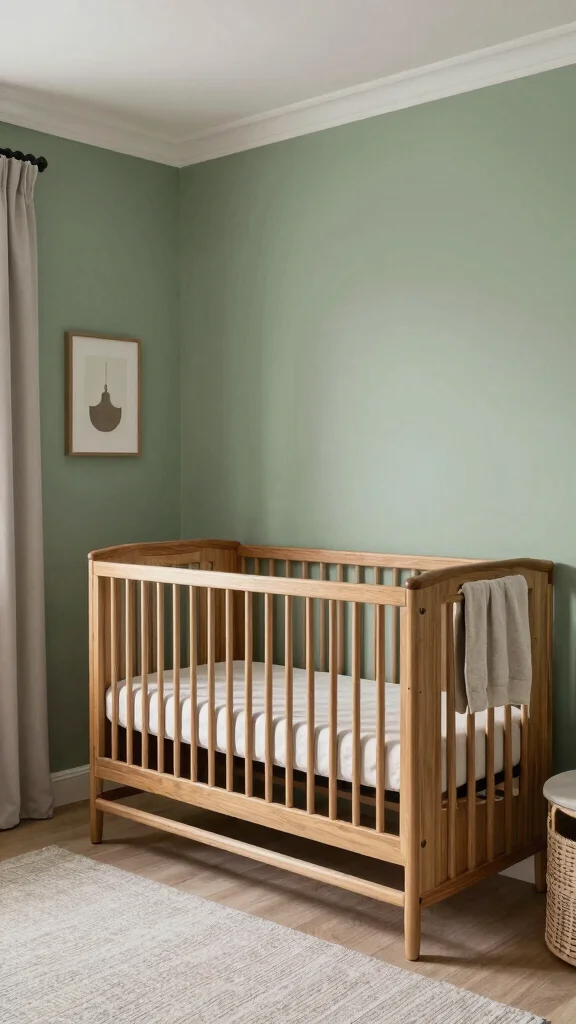 Want a nursery that grows with your child? Create a timeless sage green nursery that transitions beautifully as they age. This design incorporates classic elements, such as elegant furniture and neutral accents, maintaining a sophisticated yet warm feel. Choose rich woods, soft textiles, and understated decor that can evolve over the years. This approach not only fosters a serene environment for your baby but also keeps the space stylish and functional long-term.