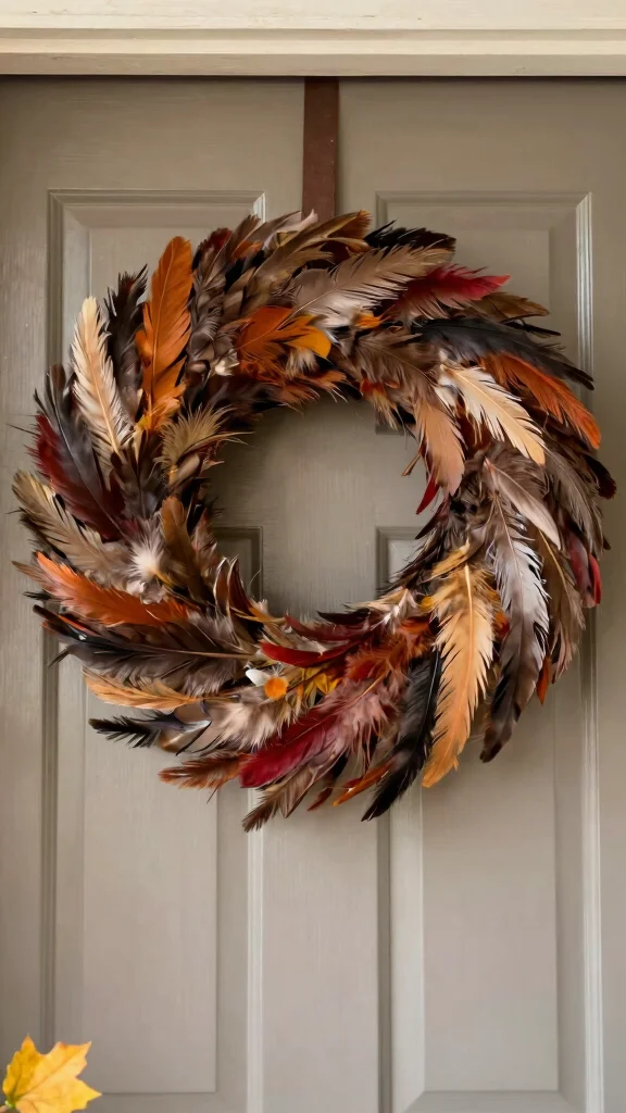 Fun fact: feather wreaths are surprisingly quick to master for easy diy fall wreaths — many take under 20 minutes with a foam base and a mix of feather sizes. You’ll love how texture and warm browns and oranges instantly cozy up any room.
