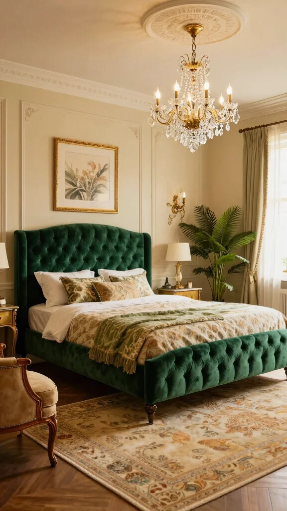 Consider these elements to enhance your vintage glam bedroom:
