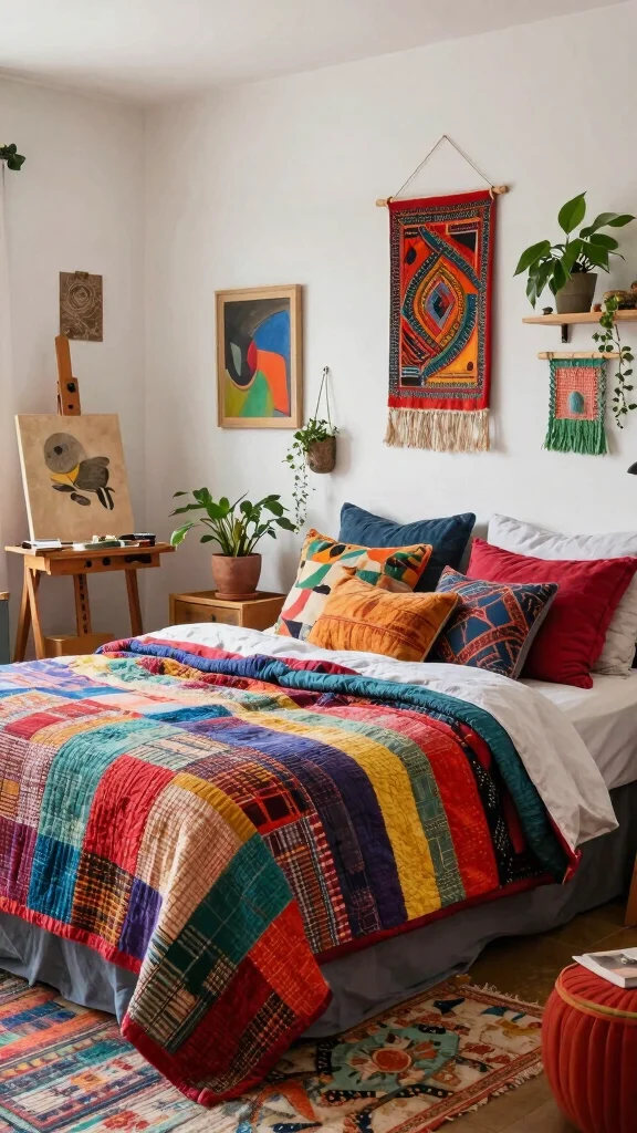 – Use a colorful patchwork quilt on your bed
