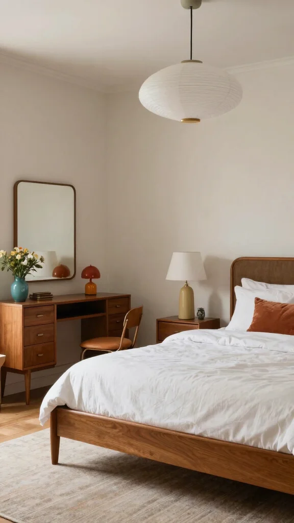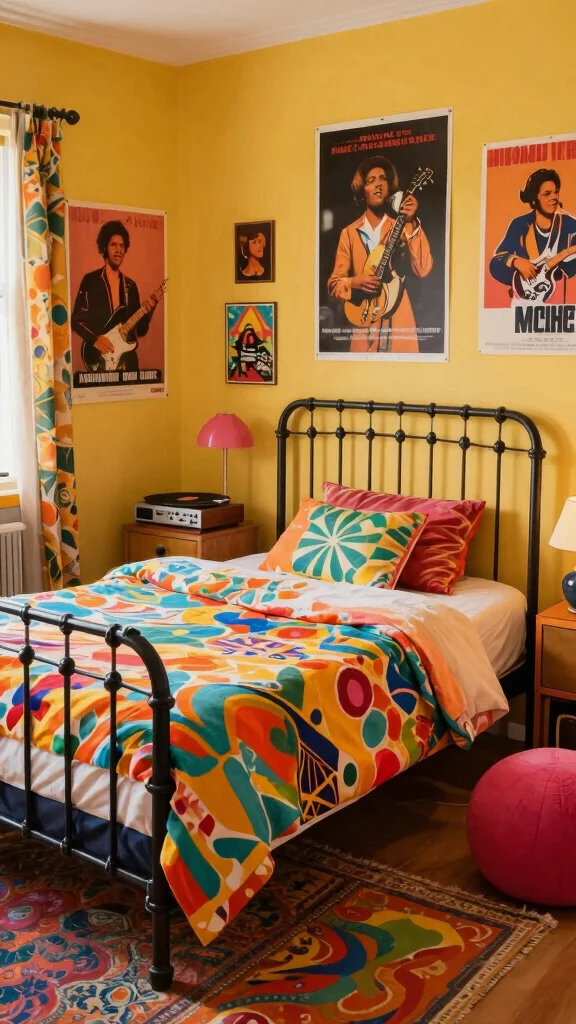 Step back in time with a retro revival bedroom that celebrates the vibrant styles of past decades. Bold colors and funky patterns create a nostalgic atmosphere that sparks joy. A classic metal bed frame paired with colorful bedding and geometric accent pillows adds character to the space. Vintage posters and quirky decor elements resonate with retro charm, making your bedroom a delightful reflection of your personality.