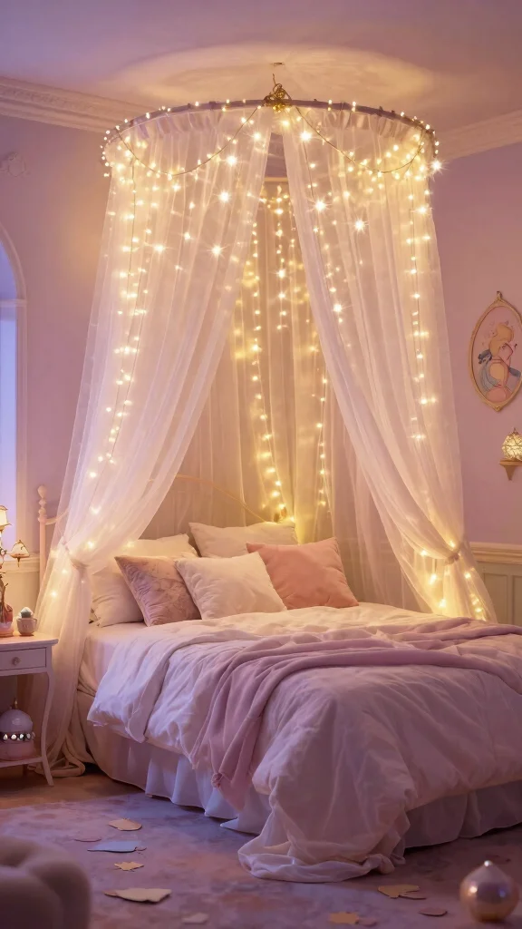 For a budget-friendly approach, consider DIY canopy curtains or sourcing fairy lights from local craft stores. This playful style creates a cozy ambiance where you can escape into your own magical world.