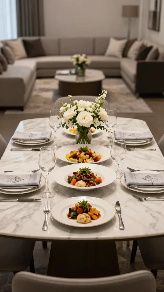 Finish with warm lighting and natural textures (linen, wood, ceramic) to make the space feel elegant and inviting, while keeping food art as punctuation rather than the centerpiece.