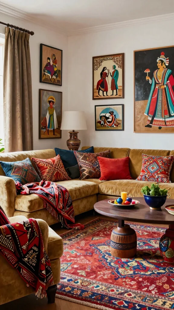 This cultural fusion can create a chic, warm, and inviting living room that tells a beautiful story.
