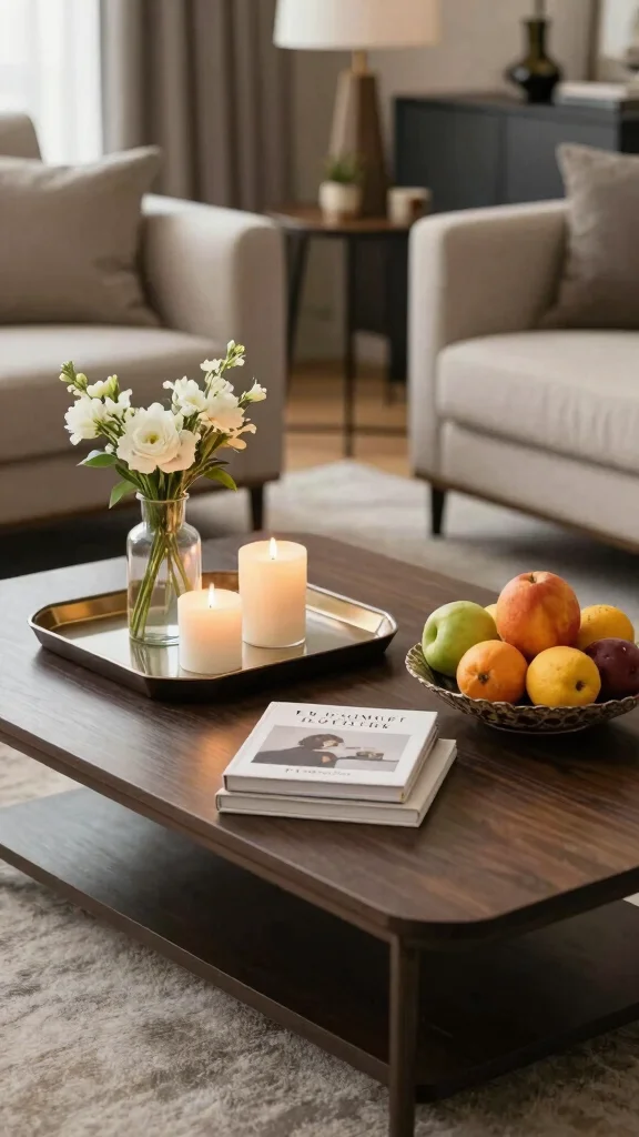 – Use a tray to organize items like candles, flowers, and decorative pieces.