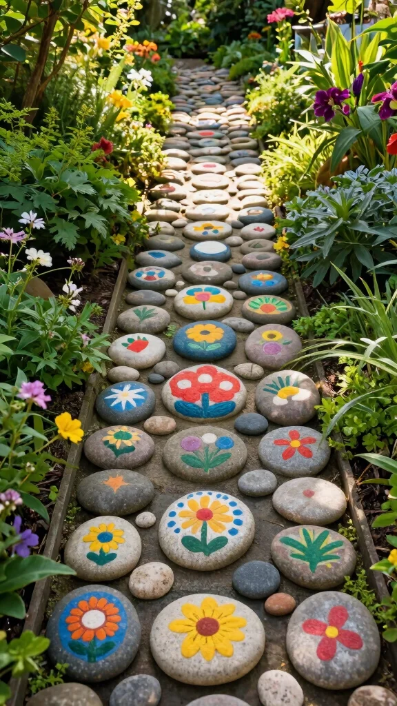 Create a delightful pebble path in your garden with painted rocks that enhance your landscape! These trails can guide visitors to special areas of your yard, like a cozy seating nook or a vibrant flower bed, adding artistic flair to your outdoors. Each rock can be painted with unique patterns, colors, or motifs, turning your garden into a colorful journey. It’s a fun project that combines creativity with functionality, making your outdoor space more inviting.