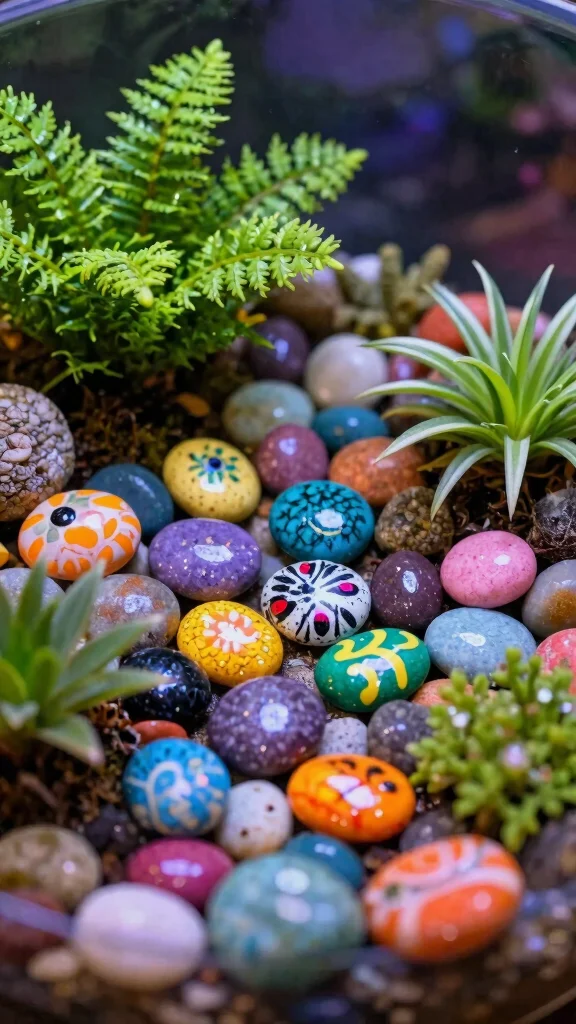 Bring your terrariums to life with painted pebbles that add a splash of creativity! These colorful stones can reflect a theme, like a fairy garden or a tropical paradise, making your terrarium not just a garden but a magical world. This project is a wonderful way to mix nature with art, providing a fun outlet for creativity. Plus, they make charming gifts for plant lovers!