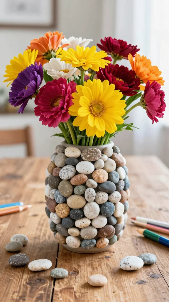 Experiment with various stone sizes for added depth, and consider wrapping twine or ribbon around the top for a polished finish.