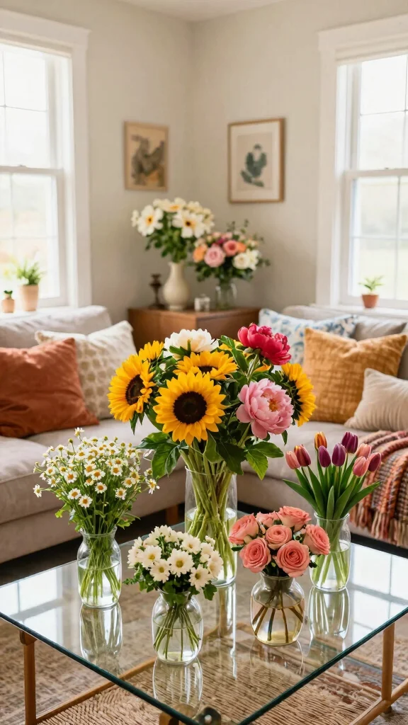 Turn any room into a garden showroom with a few easy moves. Start with a signature piece: a bold vase featuring flower combinations in bright colors, then pull that palette into textiles like cushions and curtains. Add floral-inspired wall art or a botanical print to reinforce the theme, and place petite arrangements on coffee tables or mantels for quick pops of color. Keep a few neutral anchors so the bright colors don’t overwhelm, and rotate bouquets or stems seasonally to refresh the look.