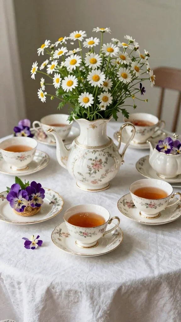 For a delightful tea party look, use mismatched teacups for an eclectic feel. Incorporating vintage linens and china enhances the charm, while keeping arrangements small facilitates easy serving of snacks and treats.