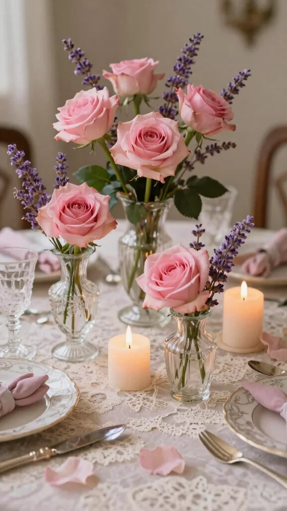 To create vintage magic, source vases from thrift shops or family heirlooms. Mixing different flower textures adds depth, while incorporating candles creates a soft, warm glow that enhances the ambiance.