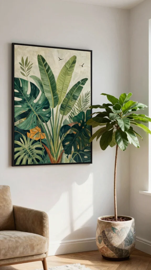 Combining art with greenery creates stunning focal points in your home! Consider incorporating botanical prints, paintings, or sculptures that highlight nature’s beauty. Pair these pieces with real plants to create a cohesive and dynamic look that feels alive.
