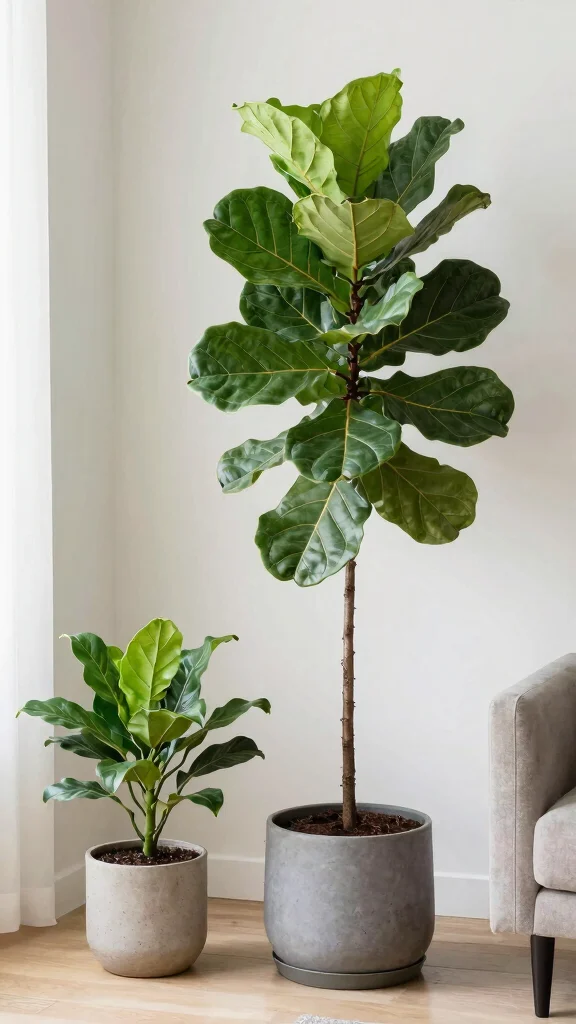 13. Elegant Fiddle Leaf Fig and Rubber Plant Duo