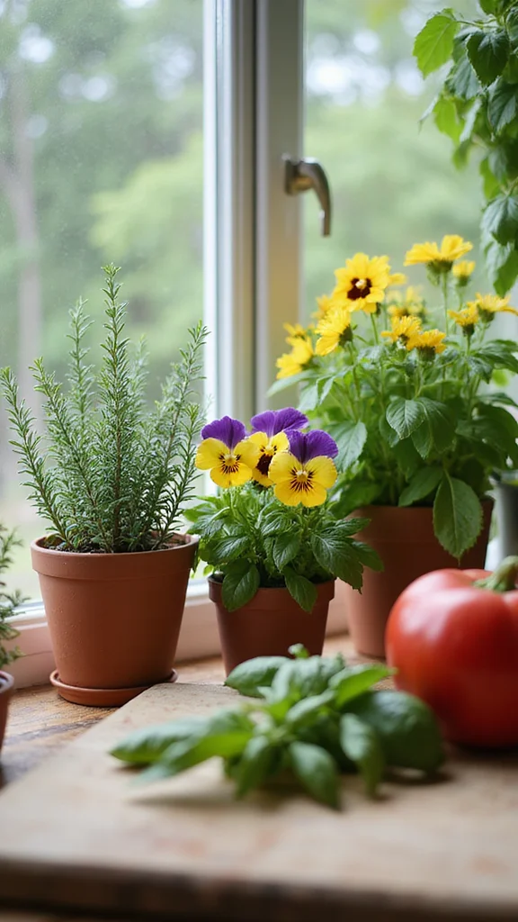 The delightful fusion of fresh herbs and blooming flowers creates a sensory experience in your home. Imagine the rich aroma of rosemary mingling with the colorful blooms of pansies. This practical yet beautiful mini herb garden can bring life to your kitchen or windowsill, merging functionality with aesthetics.