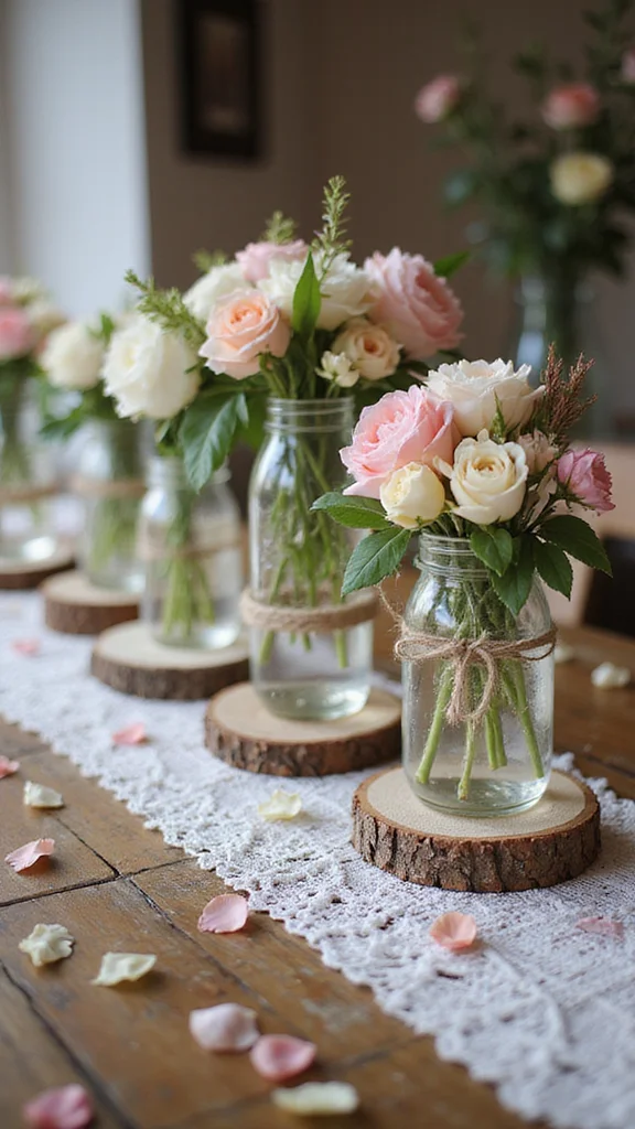 To create your own, gather mason jars, decorative fillers like pebbles, and your favorite blooms. Tie a ribbon around the neck for that finishing touch. This project not only brings beauty to your space but is also budget-friendly, allowing for seasonal customization.