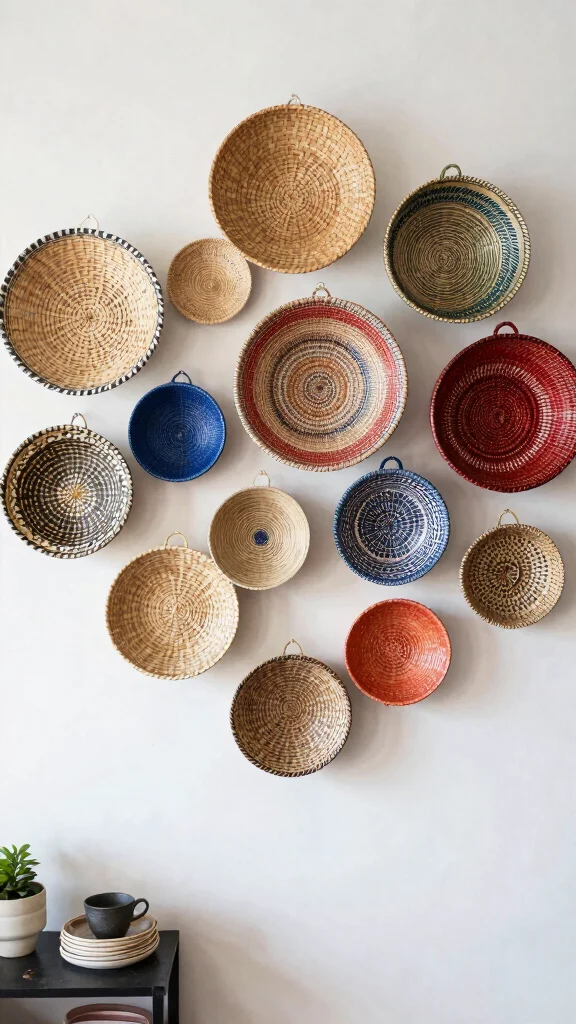 Start by gathering baskets of different sizes and styles, arranging them on the floor to find an appealing layout. Once satisfied, hang them using nails or hooks for an eye-catching arrangement. This display can become a focal point, enhancing your living room or hallway with effortless charm.