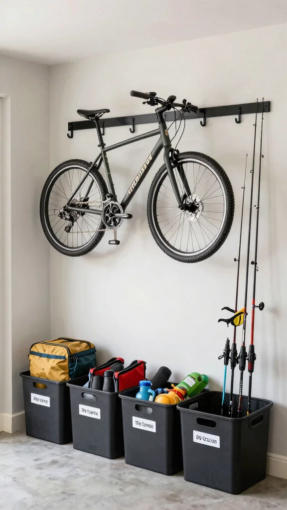 – Use wall racks for hanging larger gear like bikes