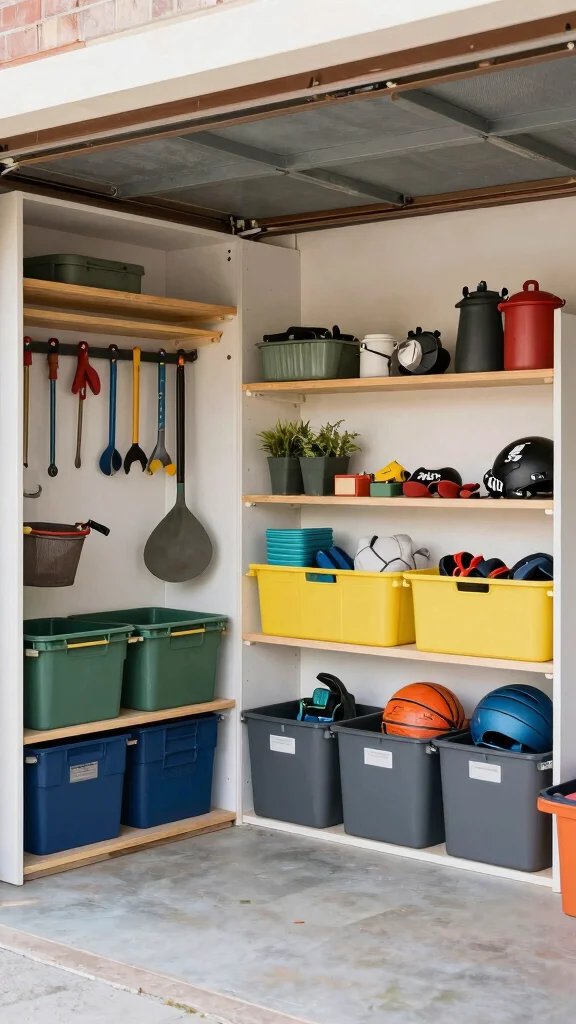 – Implement bins specifically for outdoor items to keep them dry